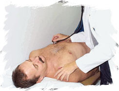 Auscultation or listening with a stethoscope: During auscultation, the physician listens to the patient's heart beat, lungs and blood vessels of the neck and groin. Abnormal heart sounds, known as gallops, are a clue to heart disease. Also, the location, character and timing of a heart murmur (this is a prolonged sound that is created by turbulent blood flow across heart valves) are used to diagnose various valve diseases. However, it should be recognized that murmurs may also be heard in many normal individuals.